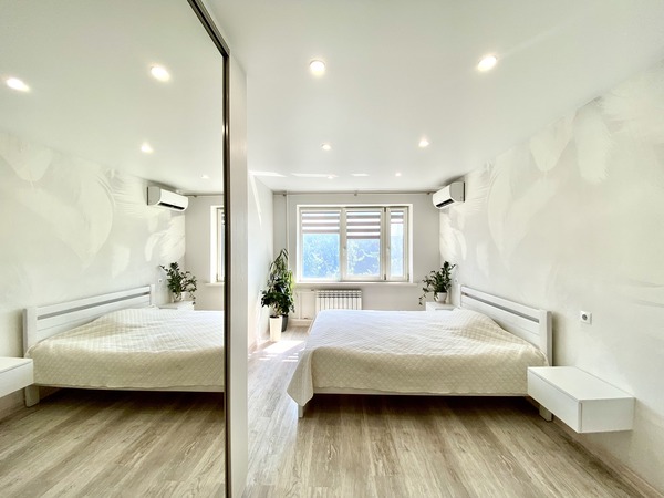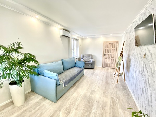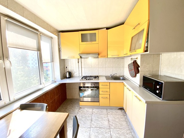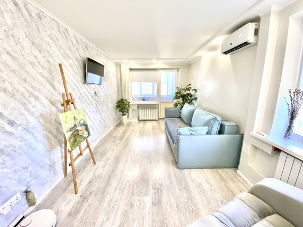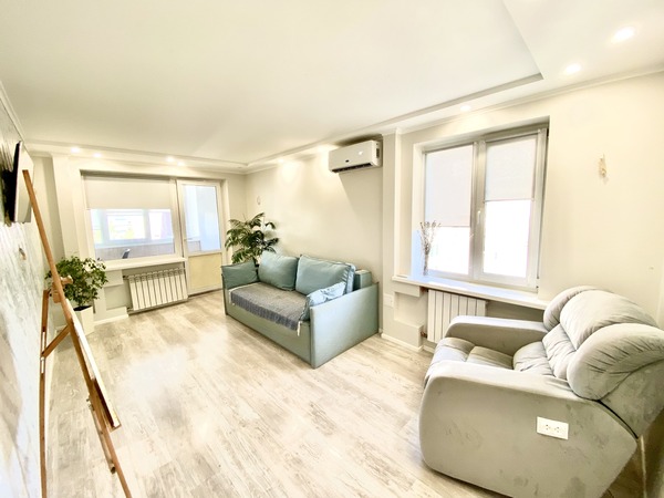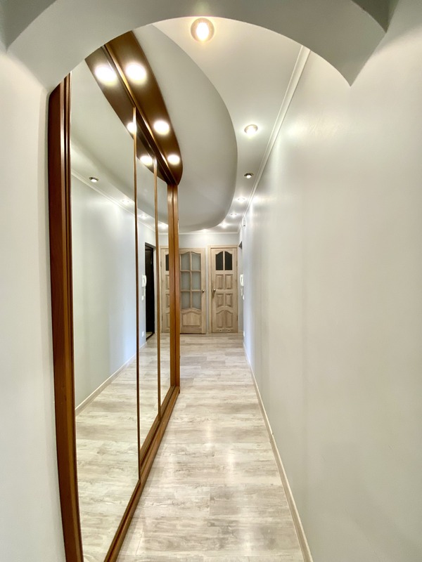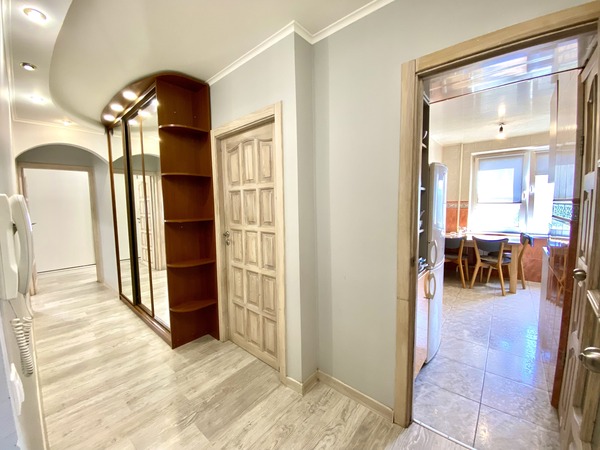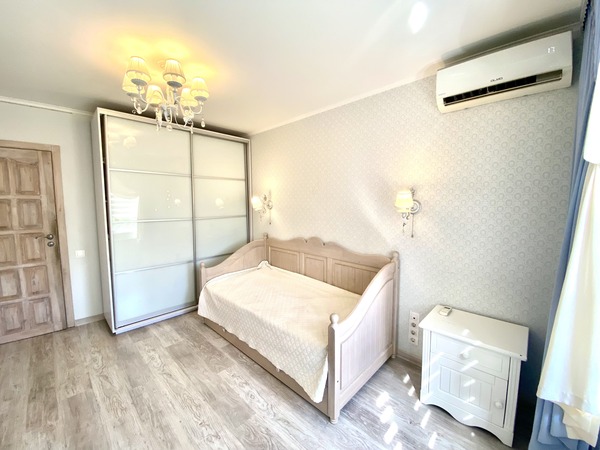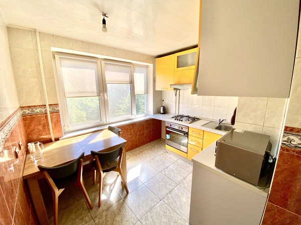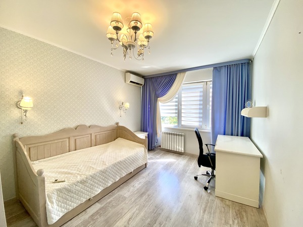 Простора трикімнатна квартира, що має двостороннє планування, на проспекті Леся Курбаса, 9, загальною площею - 67,8 м.кв., кухня - 9 м.кв., на 7 поверсі 9-поверхового будинку. Кухня обладнана всією необхідною технікою, є газова поверхня, духова шафа, мікрохвильова піч, холодильник, посудомийна машина, обідня зона. У вітальні - диван, крісло, телевізор, вихід на лоджію з облаштованим робочим місцем. Спальня з італійським двоспальним ліжком з бука, шафою-купе з окремими відділеннями для нього і для неї. У дитячій кімнаті — ліжко з дуба, шафа-купе, тумба та робоча зона біля вікна. Санвузол — роздільний, є ванна та пральна машина. Встановлені нові радіатори, кондиціонери в усіх кімнатах, надійна техніка Bosch. Будинок має зручне розташування. Поруч зупинка швидкісного трамвая (15 хвилин до ст.метро "Вокзальна"). У пішій доступності ТЦ «Квадрат», магазини (Сільпо, Фора, АТБ), кінотеатр «Лейпциг», аптеки, банки, відділення Нової пошти, кав’ярні та ресторани. Неподалік — парки «Юність», «Інтернаціональний», «Совки». Для сімей з дітьми — дитячі садки №127, №145, школи № 205, №206 ім. Леся Курбаса, Демократична школа «Час Індиго», дитячий клуб «Холлі», англійська школа «Helen Doron», футбольне поле, безліч майданчиків